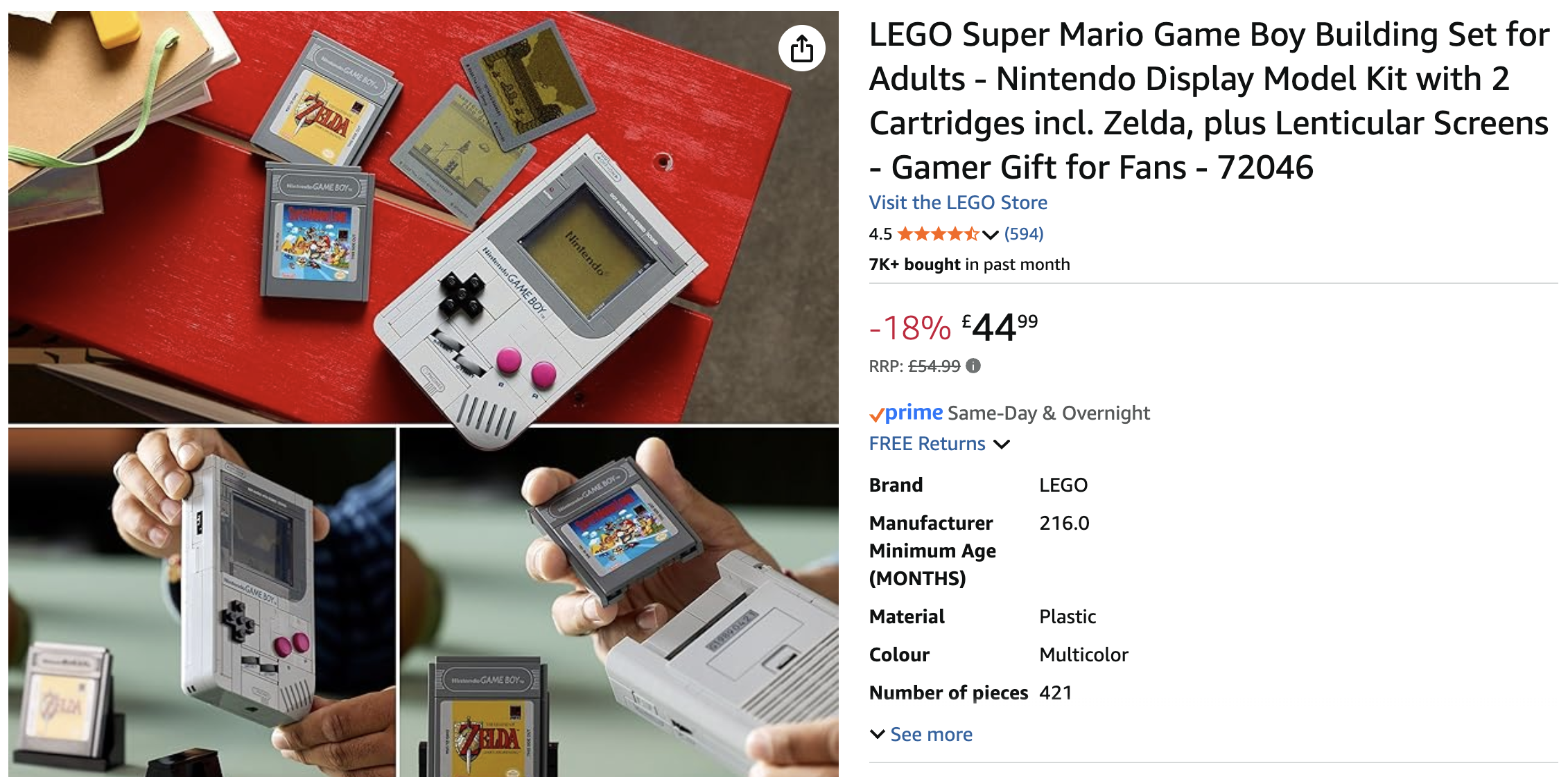 Our UK readers will be happy to know that you can now get the LEGO GAMEBOY for just £44.99 instead of the normal retail price of £54.99 on Amazon UK. That's almost 20% off.