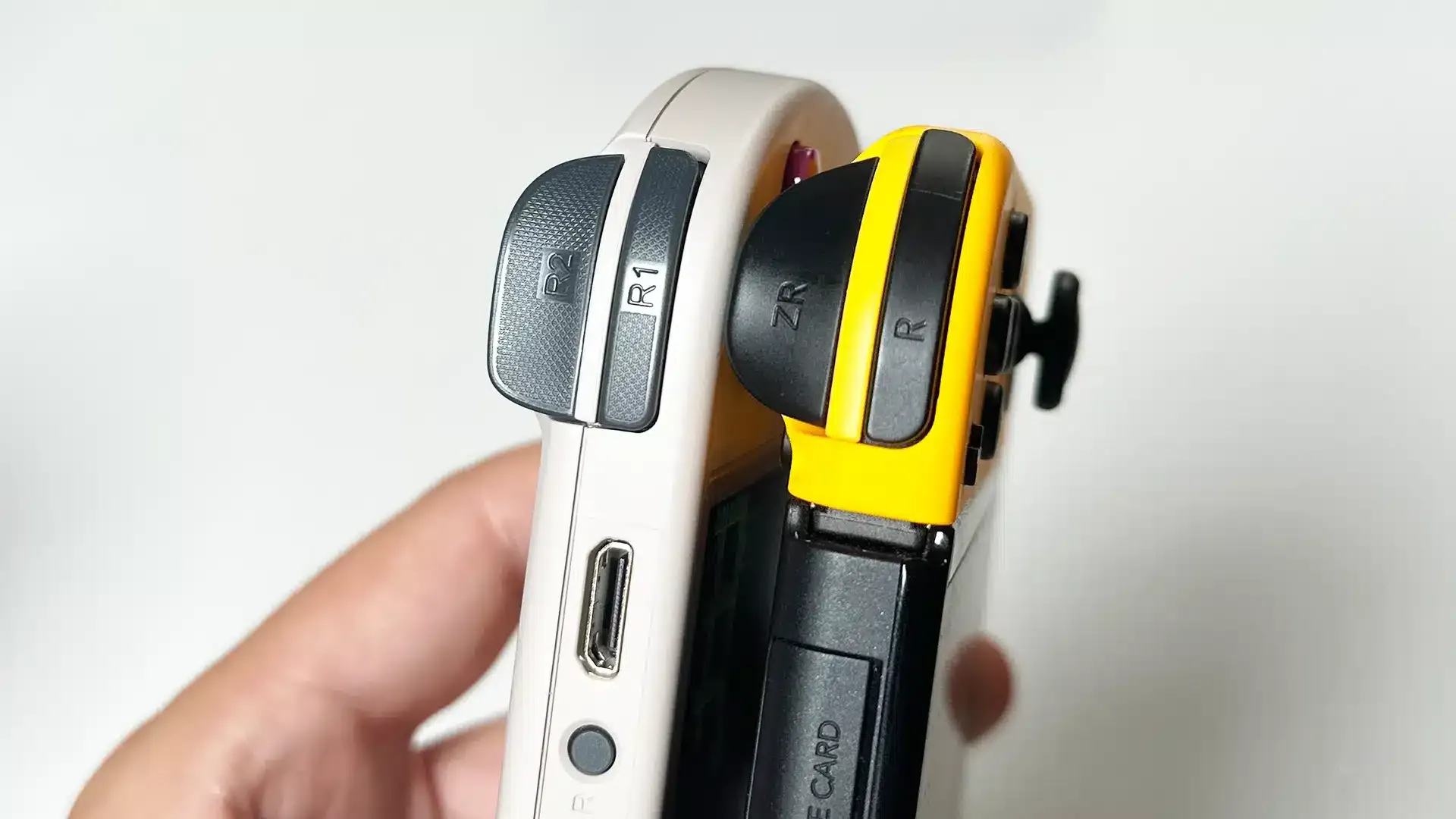 Finally up top your beautiful stacked shoulder buttons that feel very similar to the Nintendo Switch’s and feature a gripped texture to them, they wrap around the corners of the handheld neatly and don’t look out of place. I am very happy they went for the stacked buttons here, as it’s a nice upgrade from their recently released RG35XX H which don’t have them.