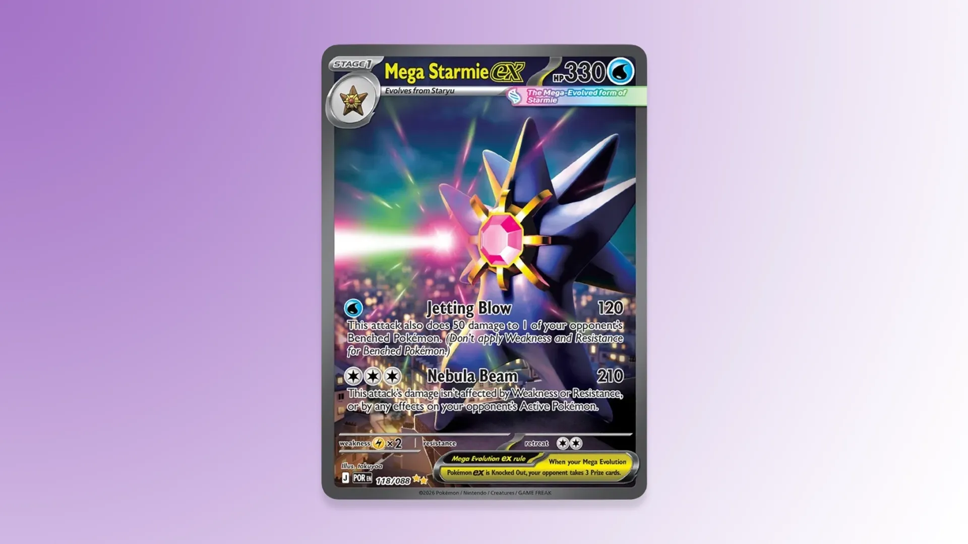The viral Mega Starmie, with big legs and one heck of an attitude, is in this set, in SIR form with deep, powerful illustrations to make this Pokémon look even scarier.