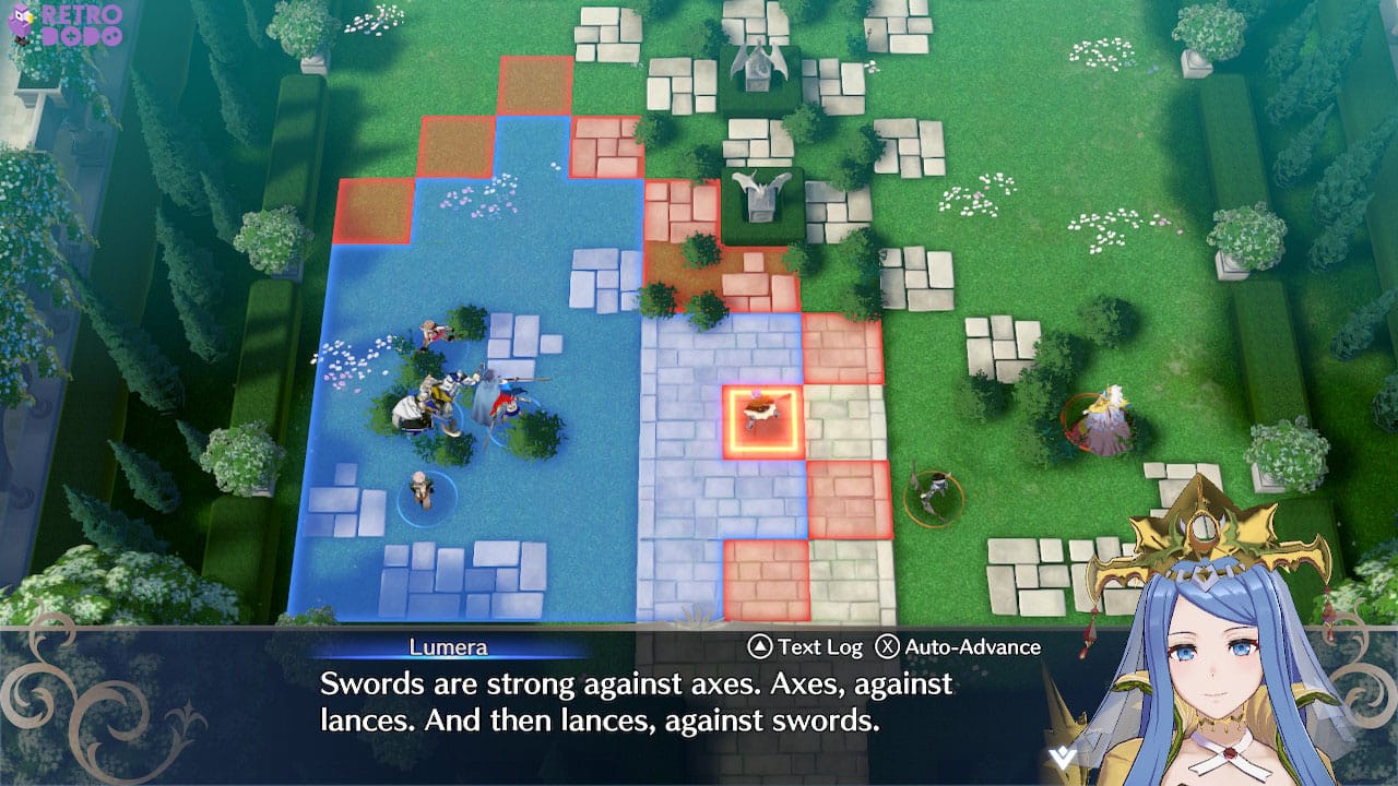 It’s a system that was introduced in earlier Fire Emblem games, depicting the advantages/disadvantages of weaponry: swords beat axes, axes beat lances, and lances beat swords. It’s simple, but damn, it’s effective.