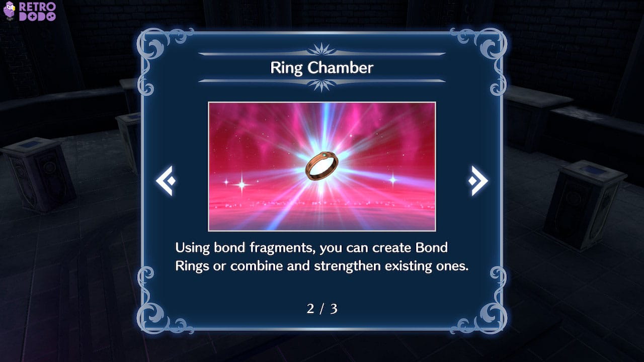 By equipping your allies with Emblem Rings they can earn SP (Skill Points) in battle, with these points then used for them to inherit skills. Bond rings, however, are a means of increasing your allies stats – visit the Ring Chamber to make one using Bond Fragments.
