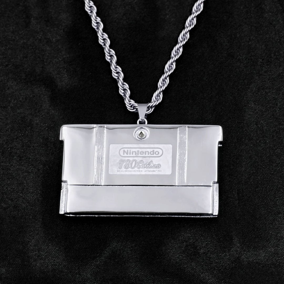 And yes, this cartridge is fully playable. If you have a GBA in your pocket (or maybe also hanging around your neck), then you can slot this pendant in and play the game. The cartridge is Stainless Steel with a real Kirby game card inside and has amazing custom engraving, as well as the 730 Carlina logo on the back.