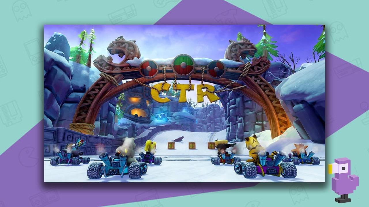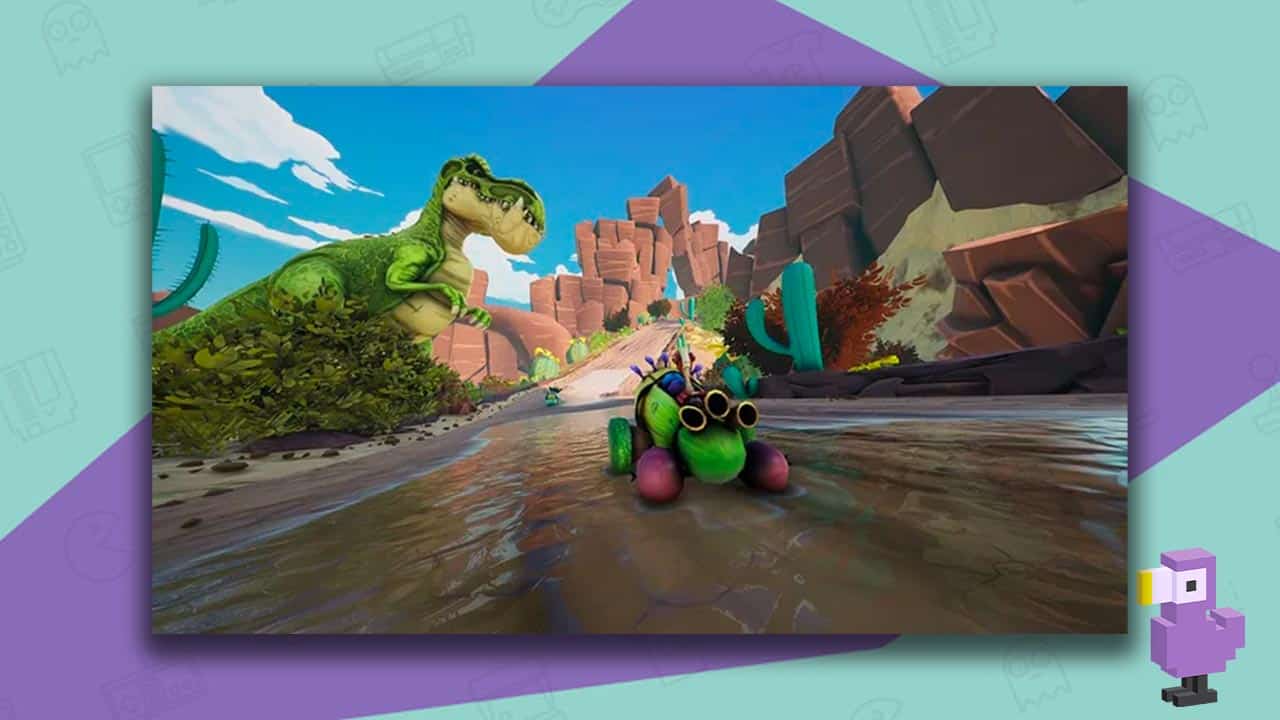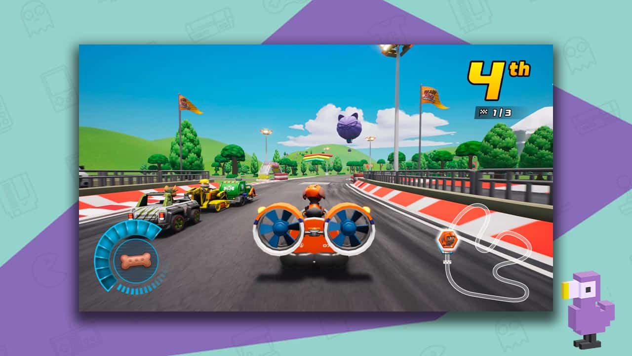 In terms of gameplay, it definitely feels like Mario Kart, with players using weird and wonderful racers as they move through wacky tracks. In graphical design, however, the courses look a lot more like Crash Team Racing.
