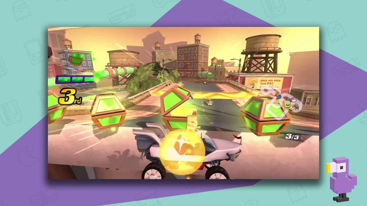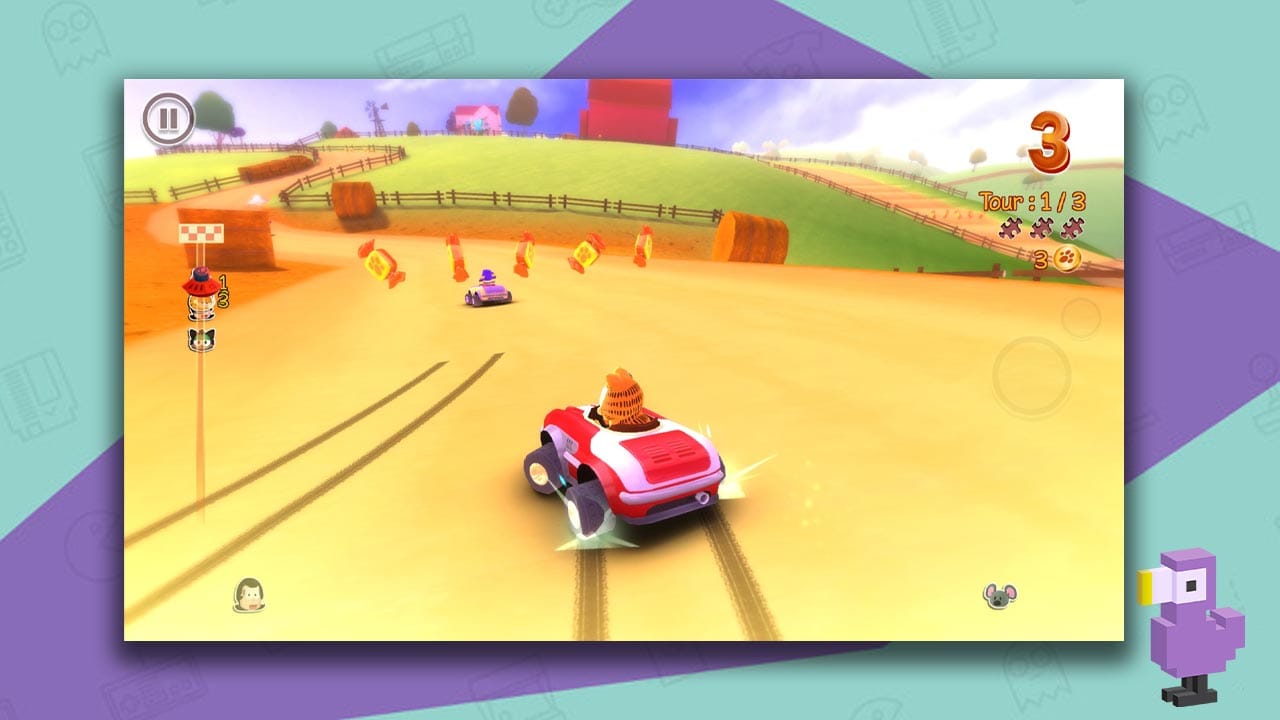 While Garfield Kart is in second place in our list, it’s the game the definitely looks and feels the most like Mario Kart. It’s also got a lot of driver status options to consider too, a little like when you’re choosing your characters in Mario Tennis, as well as the Kart characteristics found in Mario Kart 8 Deluxe.