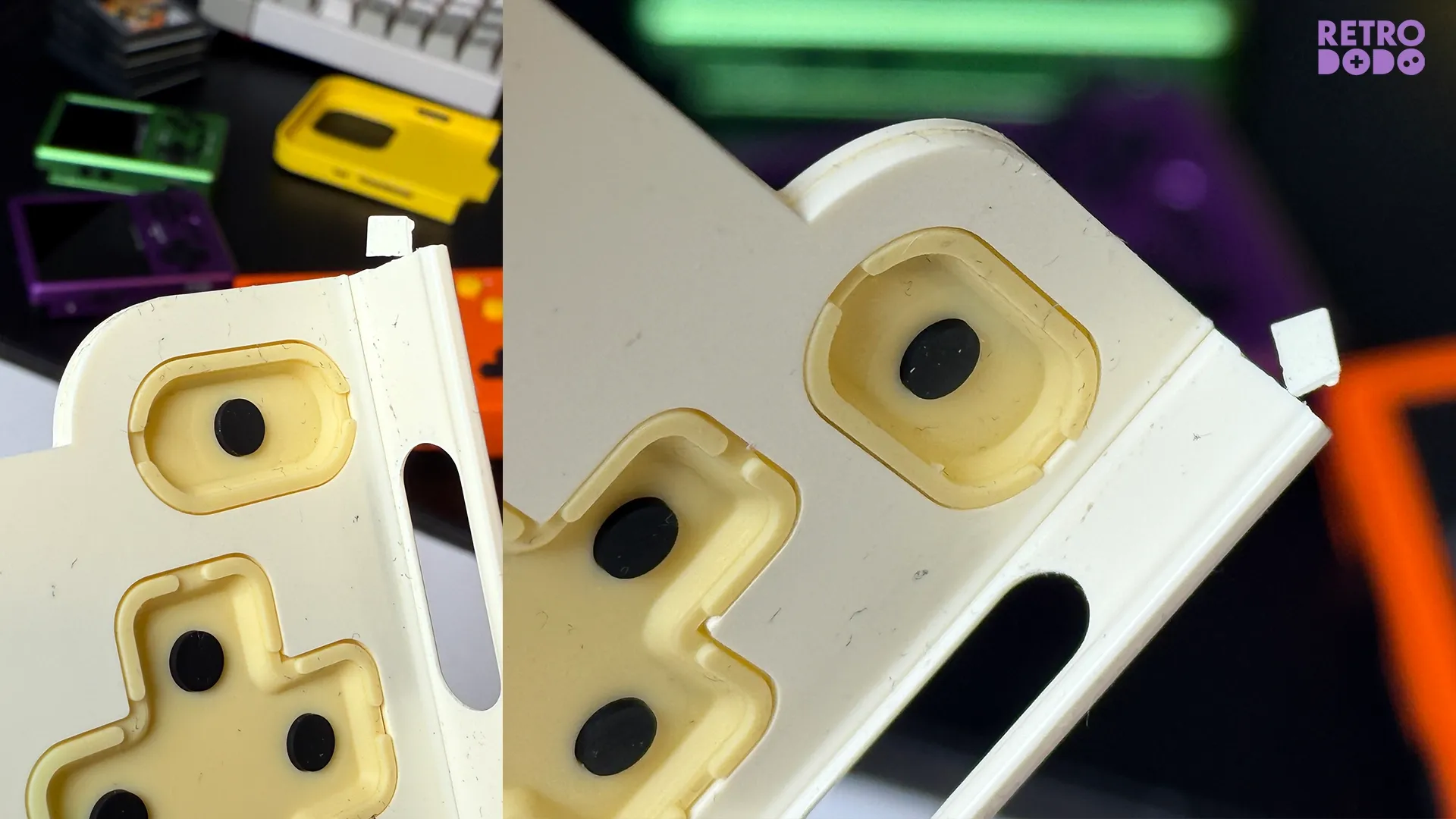 The buttons are made with standard and conductive silicone in combination with metal plates. Originally Bitmo Lab were going to use both silicone materials exclusively, but the baking process of the materials altered button quality and therefor gaming quality, so changes were made to add the metal plates to create a better experience. This is one of the main reasons the GAMEBABY is delayed.