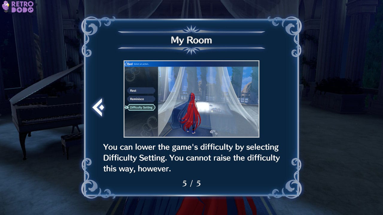Visit The Somniel and return to your bedroom. Once there, walk up to your bed and select it using the A button, which will give you the options Rest, Reminisce, and alter Difficulty; select Difficulty Setting to lower your current level.