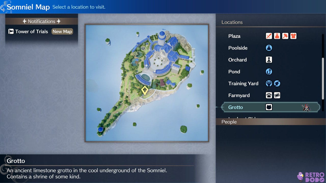 Look for the cat icon on The Somniel map to fast travel to the Grotto if you’re unsure where to go.