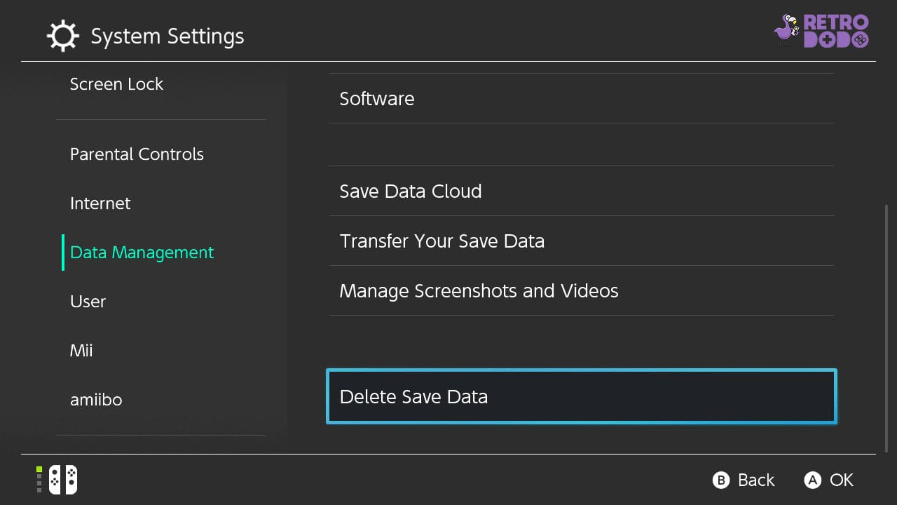 Once you’re inside the Matrix (I couldn’t not make that reference, sorry), you need to scroll down until you see data management, then select the delete save data option located right at the bottom of the screen. It’s a last step, last resort kind of deal.