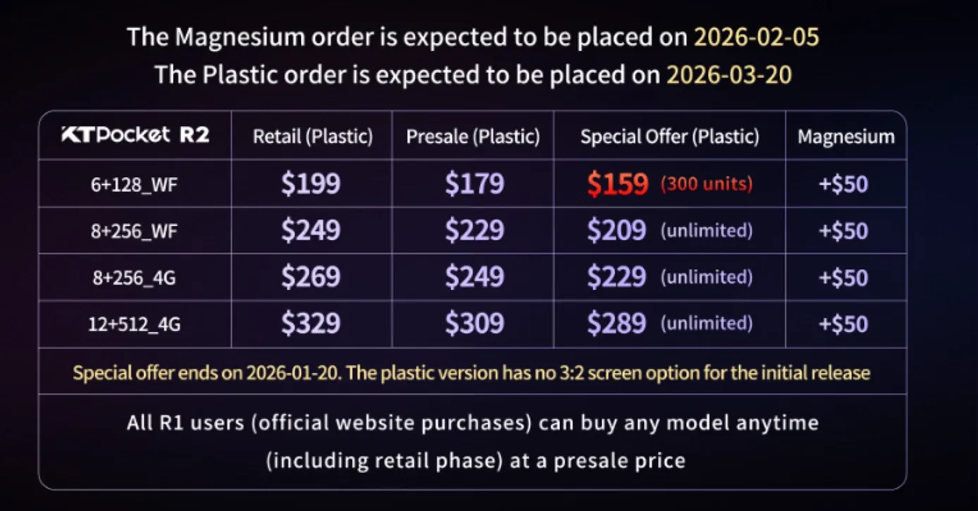 "Magnesium alloy order to be shipped on 2026-02-05, plastic version to be shipped on 2026-03-20", states KTPocket.