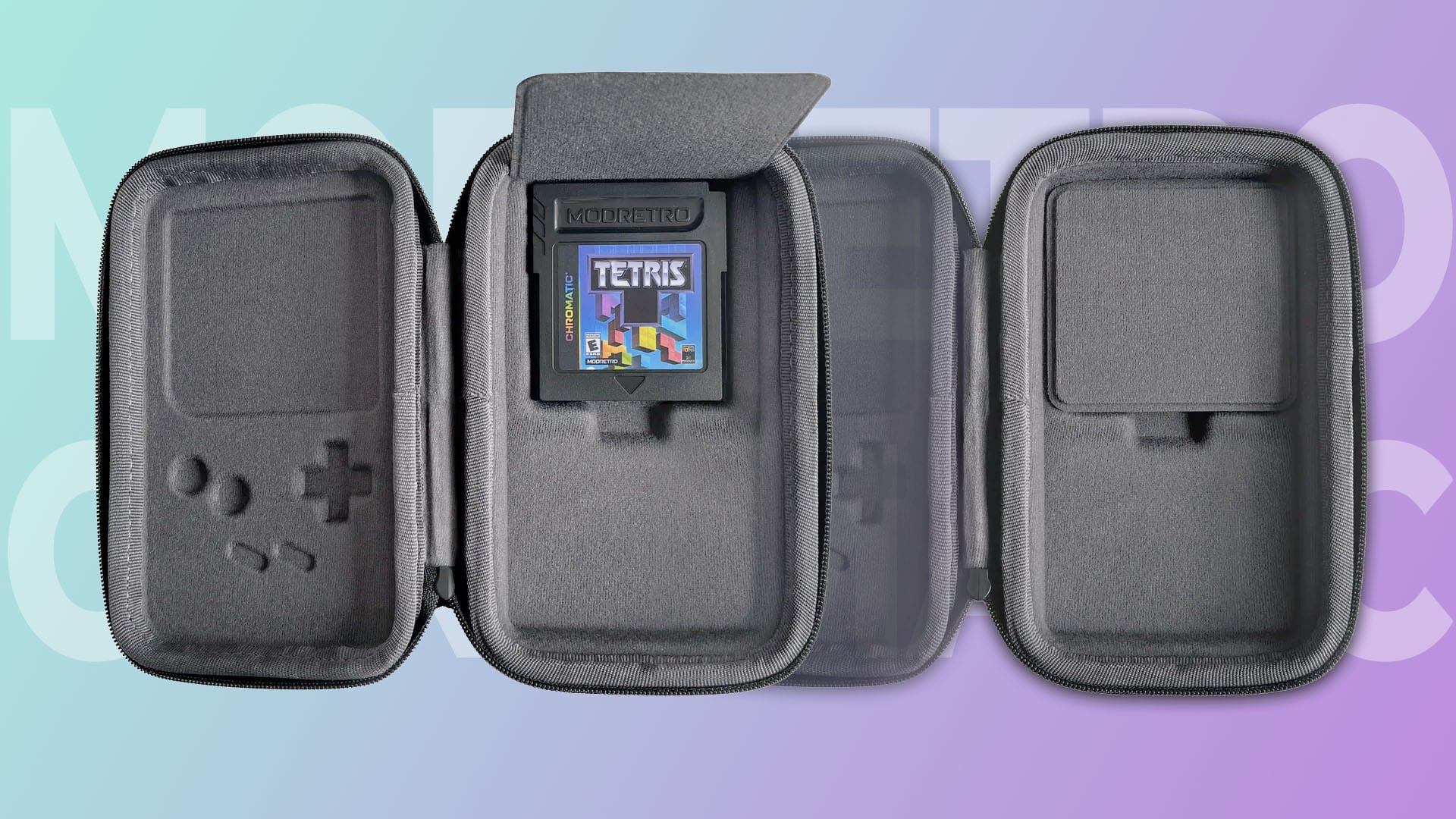 That's why ModRetro have brought out a case for the Chromatic that's perfectly shaped to keep your handheld safe. It's a hardshell case with recesses in the lid for the D-pad and action buttons to sit in, making sure that everything is protected from all angles and completely snug.