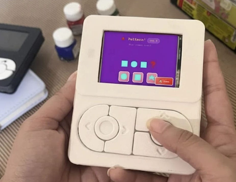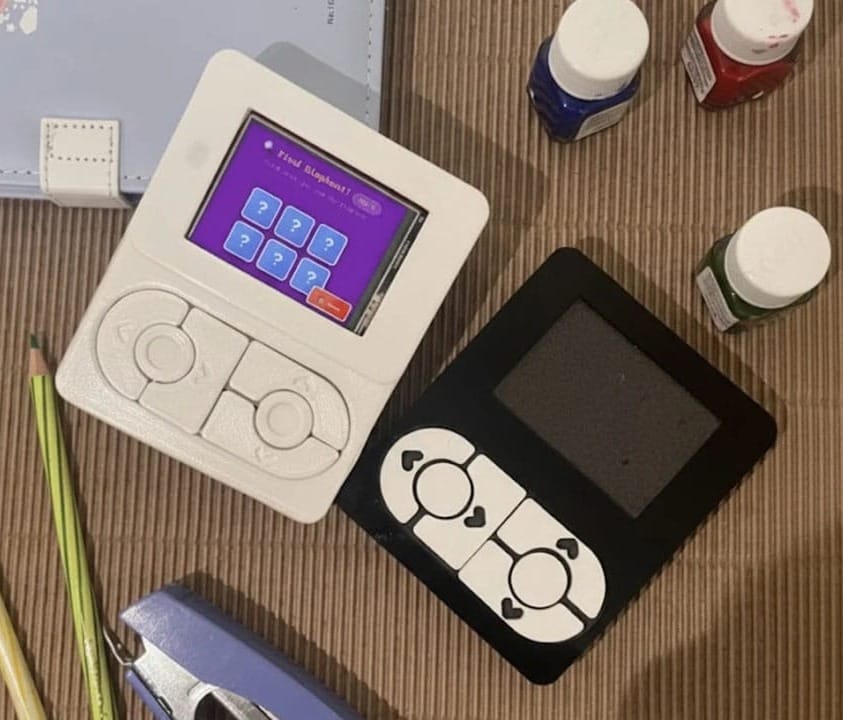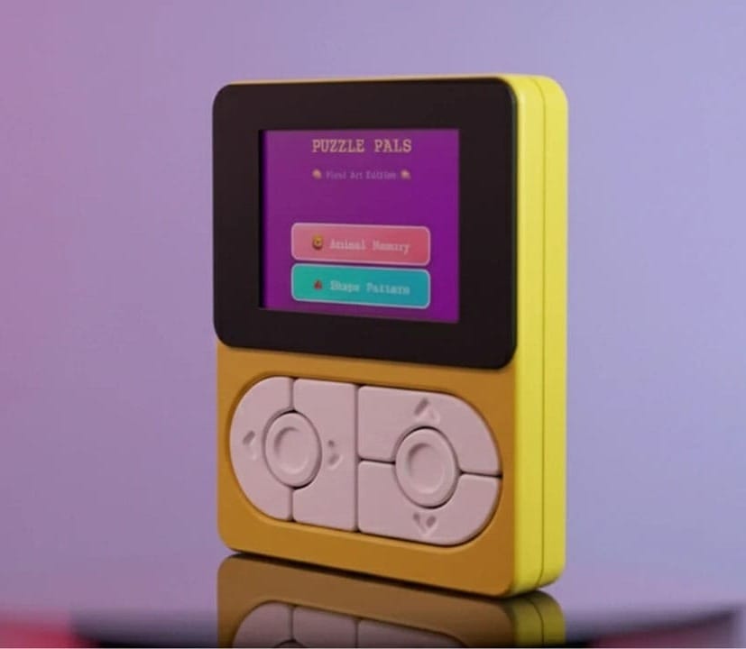 Every part of the design of Puzzle Pals, from the curved sides to the large buttons, is designed to be easy and non-frustrating for little hands. It's visually striking too, giving me the same feeling as I get when I look at ModRetro's M64toy-like. They look fun and toy like, as though the Game Boy fused itself with an iPod Video and the Fisher Price Laugh & Learn 'Lil Gamer.