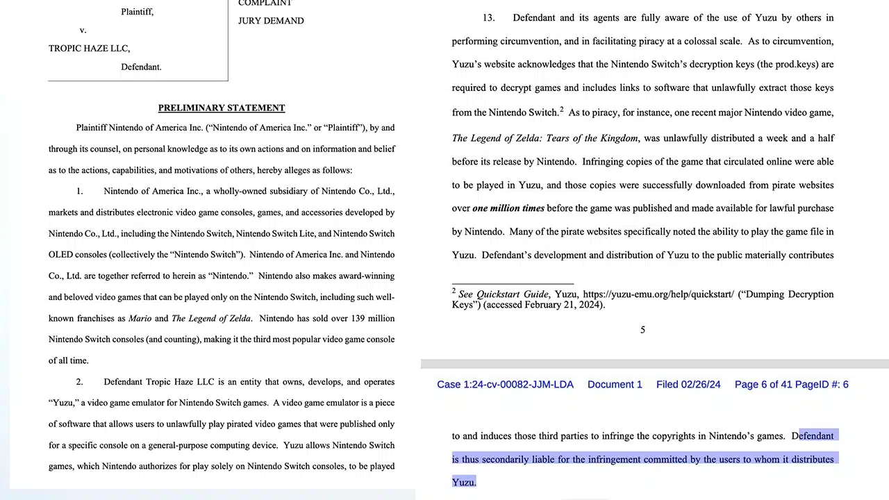 Nintendo has officially and publicly filed a lawsuit against the creators behind Yuzu (one of the best Nintendo Switch emulators on the market) on the 26th February according to Stephen Totilo on Twitter.