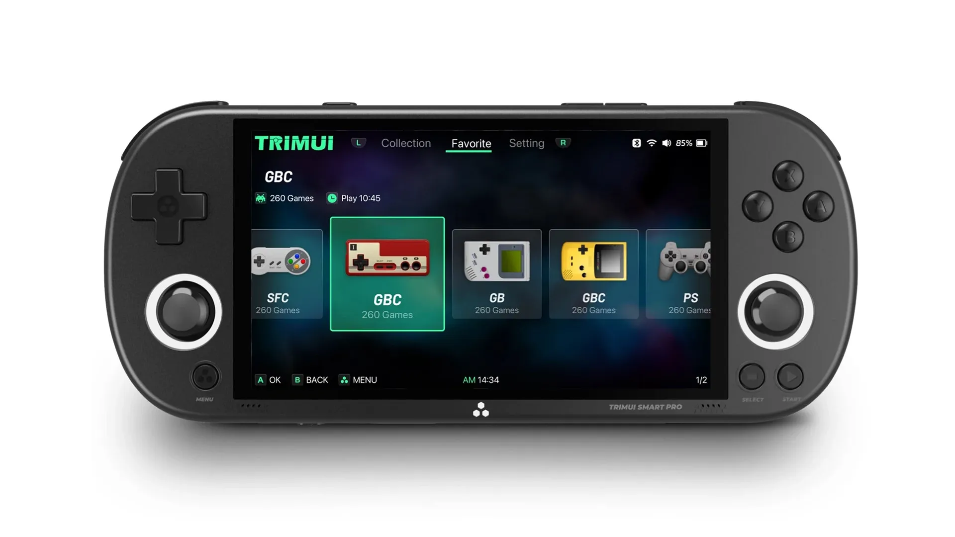 Another TRIMUI device on offer is the Smart Pro, a horizontal version with a large 5" display, a beautiful minimal design, with high-quality buttons, LED joysticks and again, an easy-to-use custom interface, perfect for retro gamers.