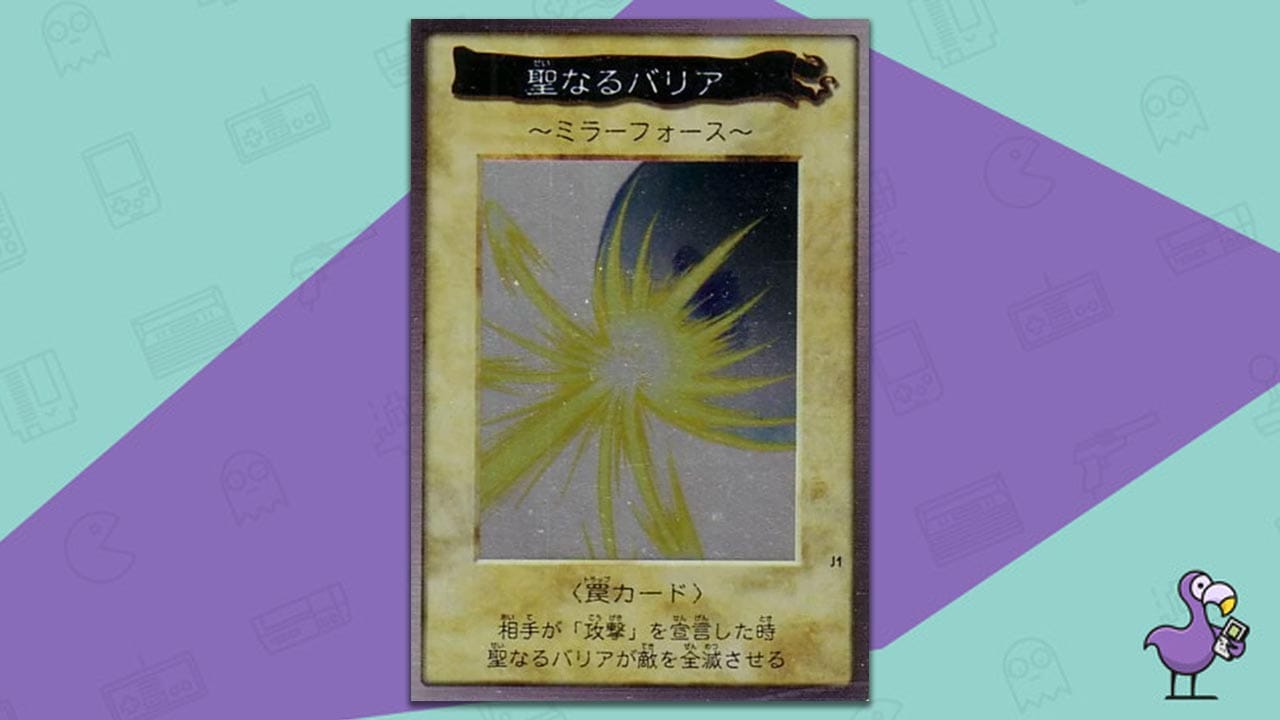Bandai only released around 200 Bandai branded Yu-Gi-Oh cards before Konami took over. Of those 200 cards, the Mirror Force card is undoubtedly one of the most sought after.