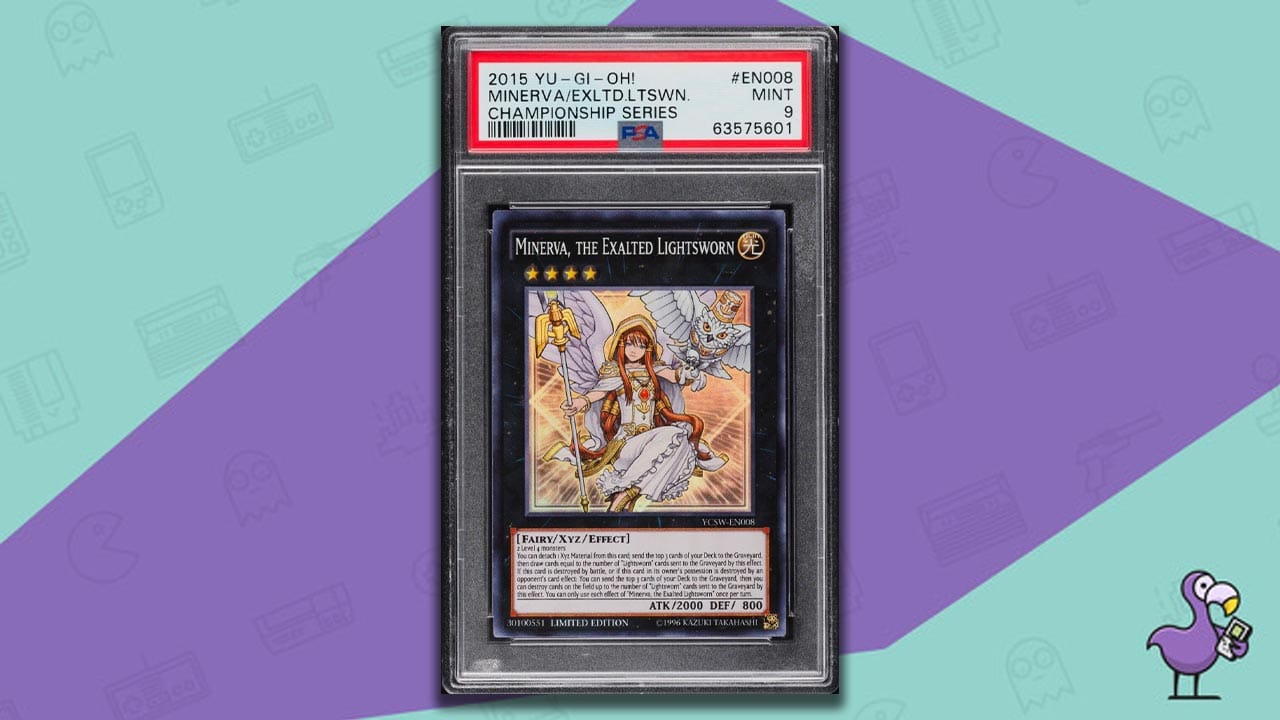 Next up on our list of the most rare Yu-Gi-Oh cards is Minerva, The Exalted Lightsworn, but specifically the YCSW-EN008 printed card.
