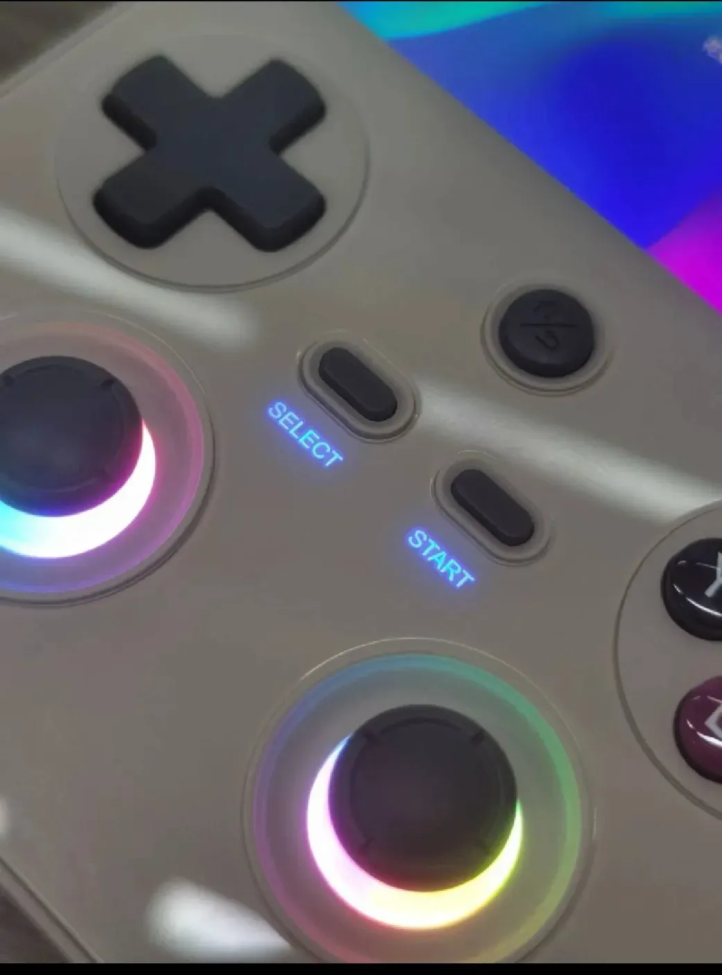 LEDs behind the select/start button are also new, I believe, and it looks like ANBERNIC is keeping the same anlaogue sticks, DPAD and gloss action buttons that were found on their most received RG4 devices.