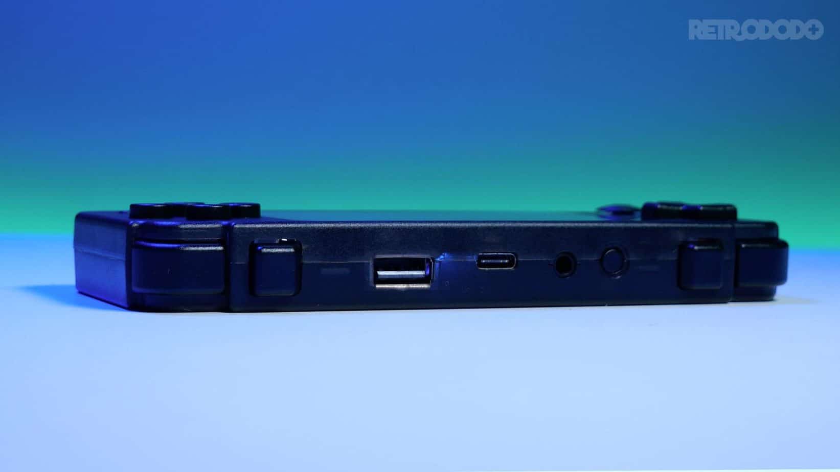 You’ll also find the START/SELECT buttons on the face too. On top of the RK2020 you’ll be greeted with four shoulder buttons, ON/OFF button, headphone jack, a USB C port for charging and a USB port for installing your firmware and transferring files.