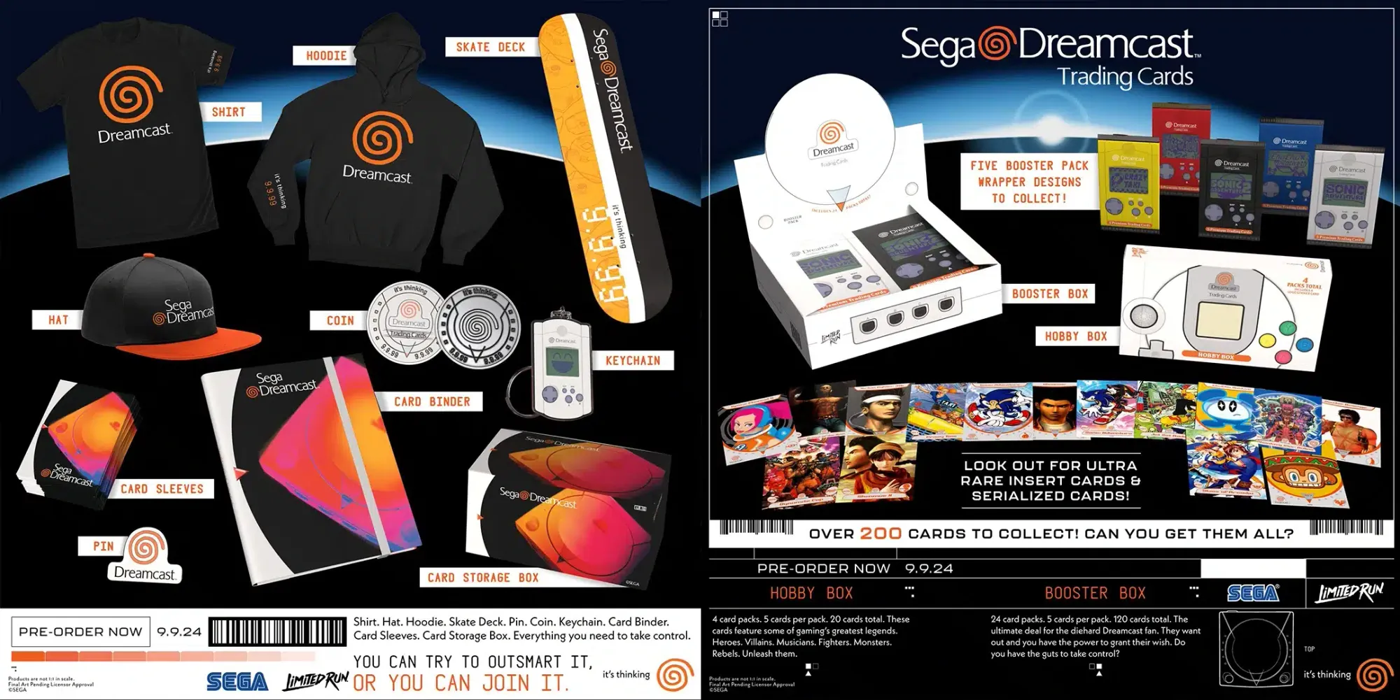 The booster box costs $124.99 and is designed to look like the Dreamcast too featuring 24 packs in total, with each pack containt 5 cards, making a total of 120 cards in each box, still not enough to collect all 200, but it’s a good start. The collectors binder can hold all 200 cards, making it a good addition for those wanting to complete the whole set.
