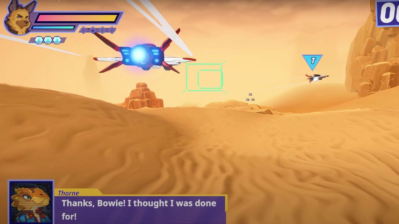 Giles has recently been working on a new game called Wild Blue, which, considering his previous work, is unsurprisingly a spiritual successor of sorts to Star Fox. Replace Fox McCloud with a wolf called Bowie and a whole new set of anthropomorphic animals including a Dinosaur called Thorne, and you've got yourself the newest air protection league on the block!