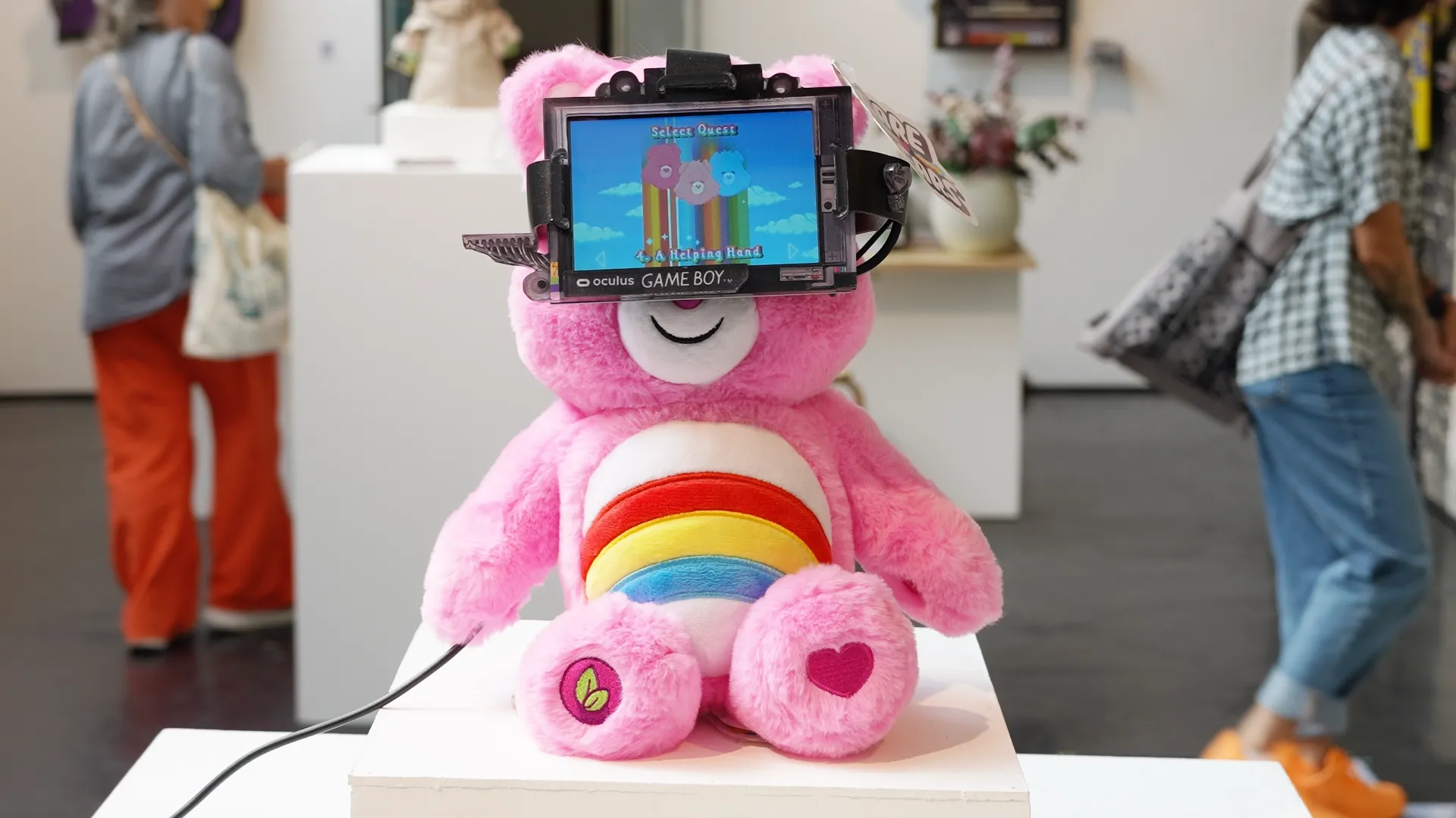 Connor’s most infamous piece of the gallery is the strapped-up Care Bear, wired up with a screen on its face featuring what I believe is the Care Bear GAME BOY Advance game from 2005, also known as Care Bears: Care Quest. It’s a game I have never played, and it shows in this video, but ignore that and picture this in your games room.