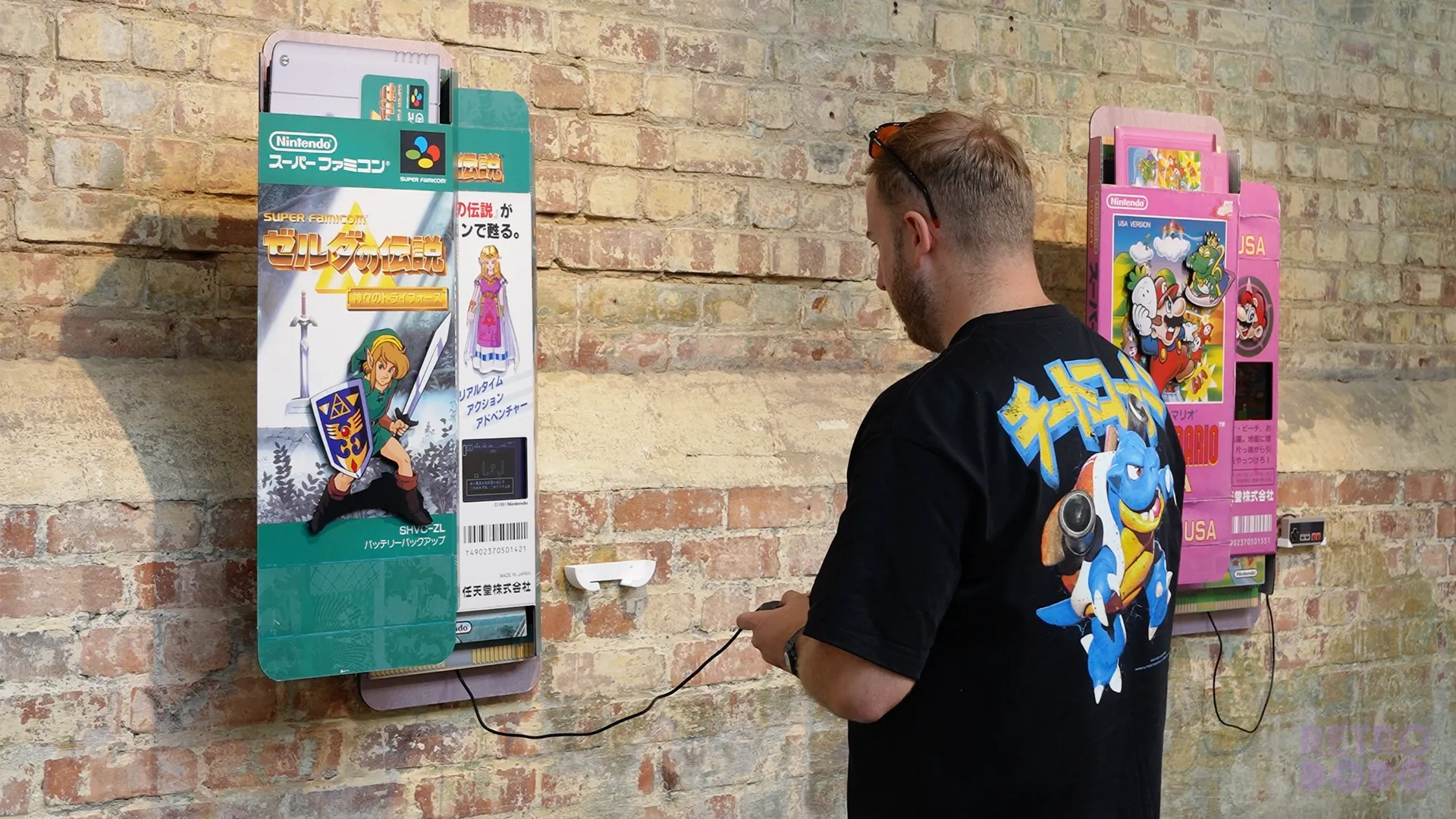 On the right-hand side of the gallery, there was a handful of more box art consoles, from the Japanese version of Zelda on the SNES. The pink cartridges Super Mario on Famicom, a Nintendo Wii strapped to an old-school music player.