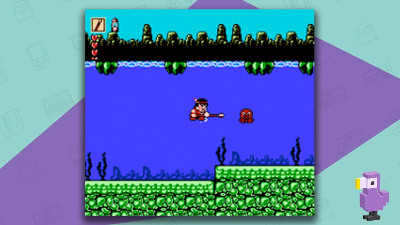 Well, players have to take a Native American character on a side-scrolling fight-fest, killing some weird and wonderful enemies that have definitely taken inspiration from other Nintendo characters that have graced out screens via the NES.